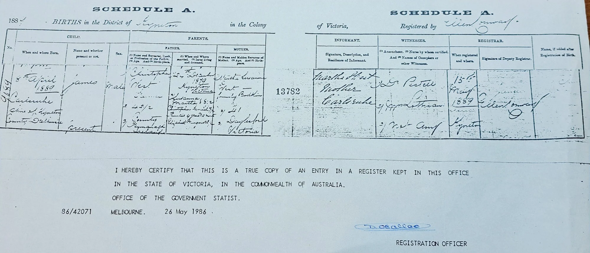 James William West, youngest son of Christopher West, and wife Martha (nee Bodkin), was born in Kyneton, Victoria, on 8th April 1889.