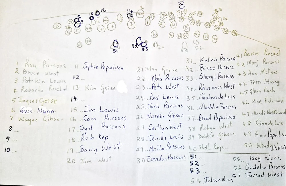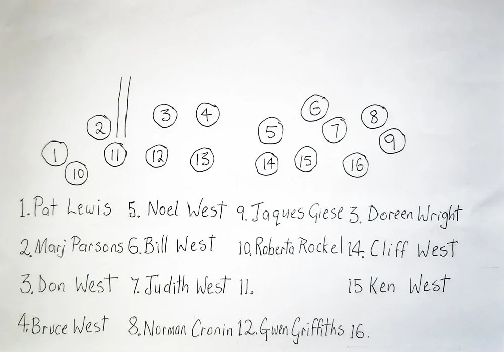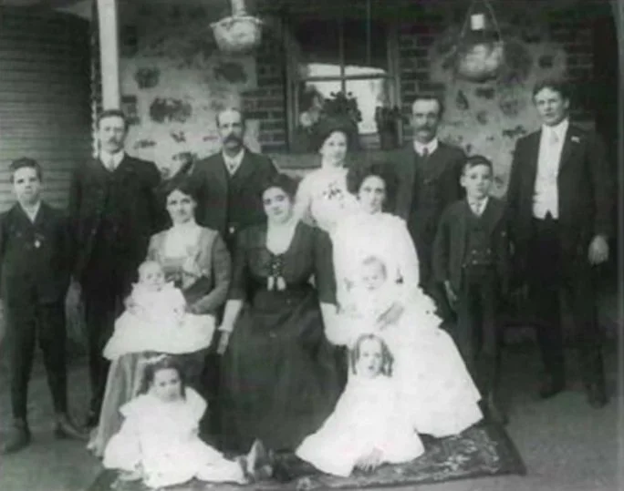 Frank, JT, Elizabeth ‘Bessie’, Sam, JW ‘Jim’ , Bob, Lavina, Jean, Edith, Alice ‘Sis’, Cliff, Stan, Marie, Mabel