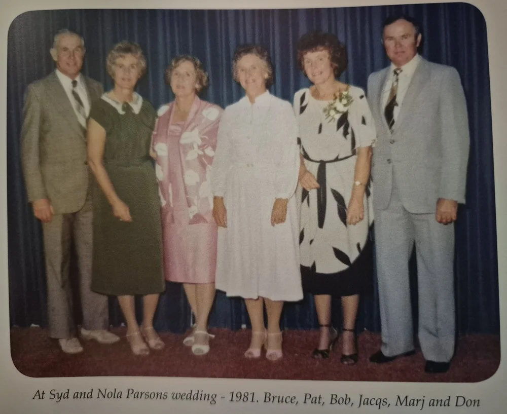 JW and Marjorie had seven children: Jaqueline (b1925 m Stanley Giese), Bruce William (b1926 m Phyllis Jackson), Patricia Margaret (b1928 m Gordon ‘Jim’ Lewis), Roberta Bowe (b1930 m Barry Rockel), Edmund James ‘Jimmy’ (1931- 33), Donald James (b1934 m Mavis Linto), and Marjorie Ann ‘Polly’ (b1939 m Raymond Parsons).